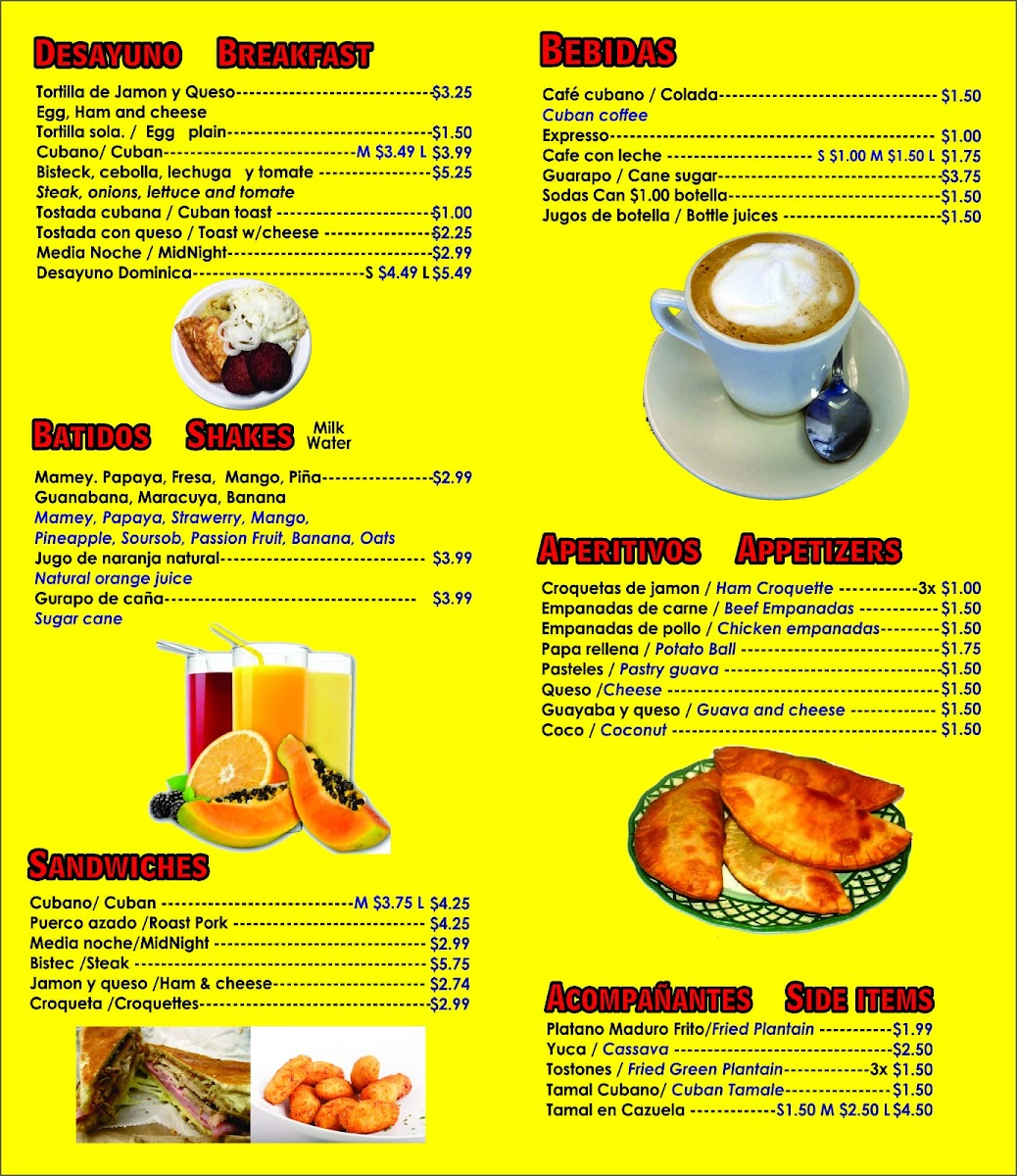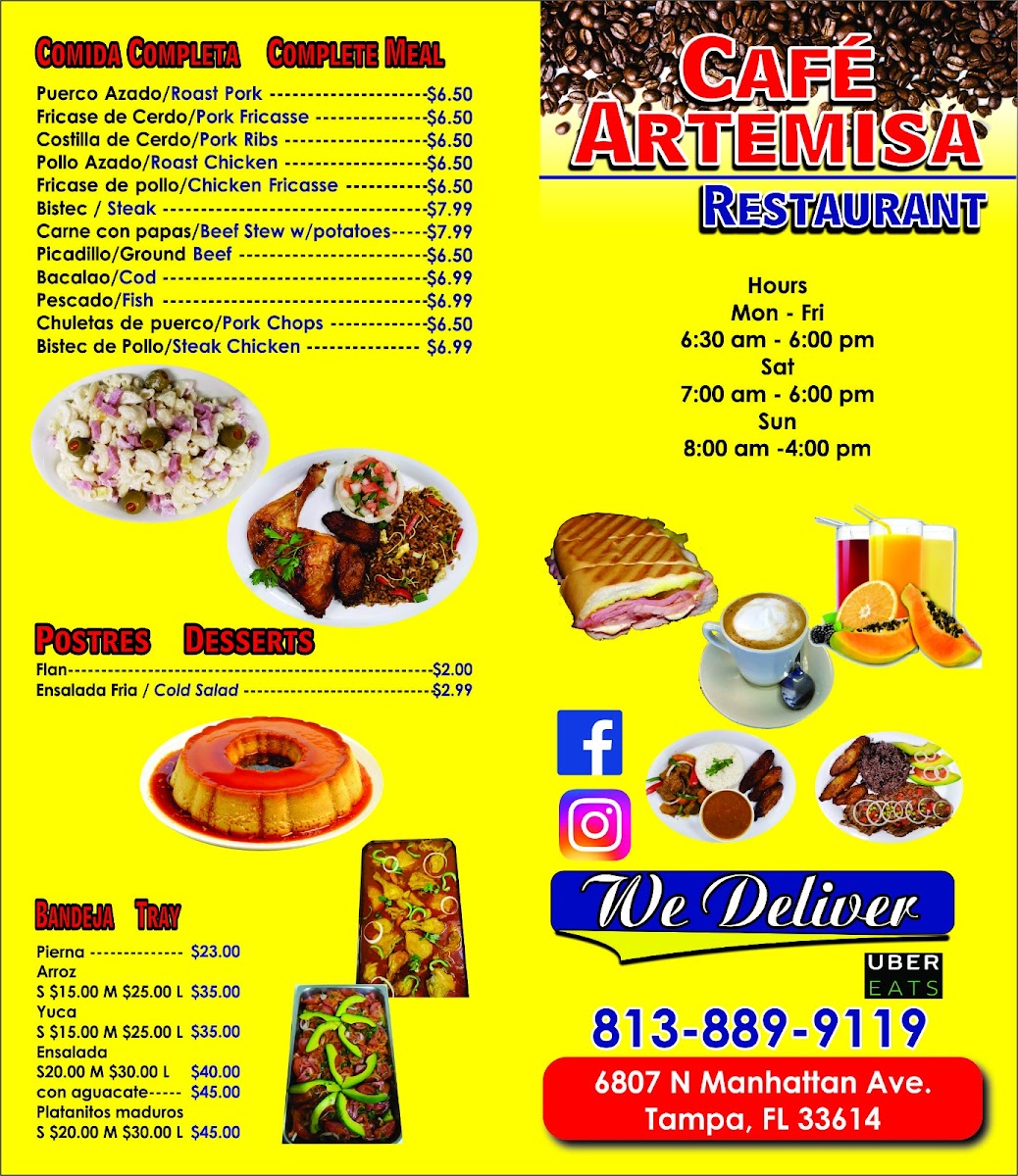 Welcome to Cafe Artemisa, a culinary gem nestled at 6807 N Manhattan Ave, Tampa, FL. Renowned for its vibrant and authentic offerings, this charming café invites you to indulge in a menu that masterfully celebrates Latin flavors. Start your day with a glimpse of their scrumptious Cuban Sandwich or the mouthwatering Steak Sandwich, both hailed for their rich taste and generous portions. The comforting Stewed Beef Meal comes with yuca and fried rice, showcasing the cafe’s dedication to fresh, quality ingredients. Customers rave about the phenomenal Cuban coffee and the lively atmosphere, often bustling with patrons. Savor the delightful Tilapia Meal, paired with platanitos for a delightful coastal touch. With quick service and a warm staff, Cafe Artemisa is not just a place to eat but an experience that captivates the heart and palate. Don’t miss out—this secret haven is worth every bite!